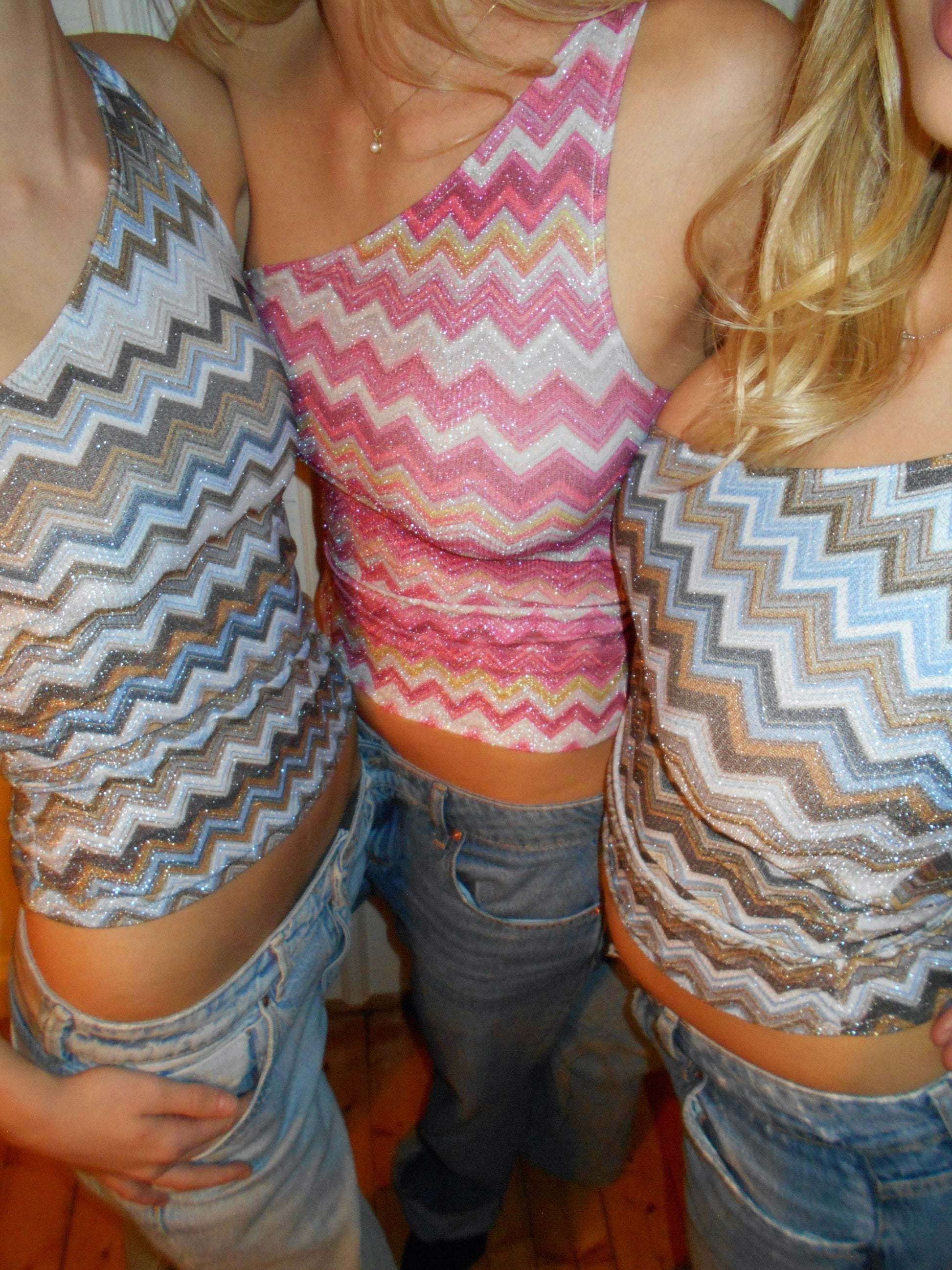Siste restock av Louisa one shoulder! Louisa toppen har et fast asymmetrisk snitt med et tydelig rosa sikksakk mønster og glitter. Toppen sitter rett og enkelt langs kroppen, uten knyting eller tilpasning. Passformen er ren og legger fokus på skulder og halslinje. Snittet er rent og tydelig som gjør at toppen fungerer både til jeans, dressbukser og til mer pyntede antrekk. Den er lett å bruke, og uttrykket er klart uten at du trenger å style noe mer rundt den.